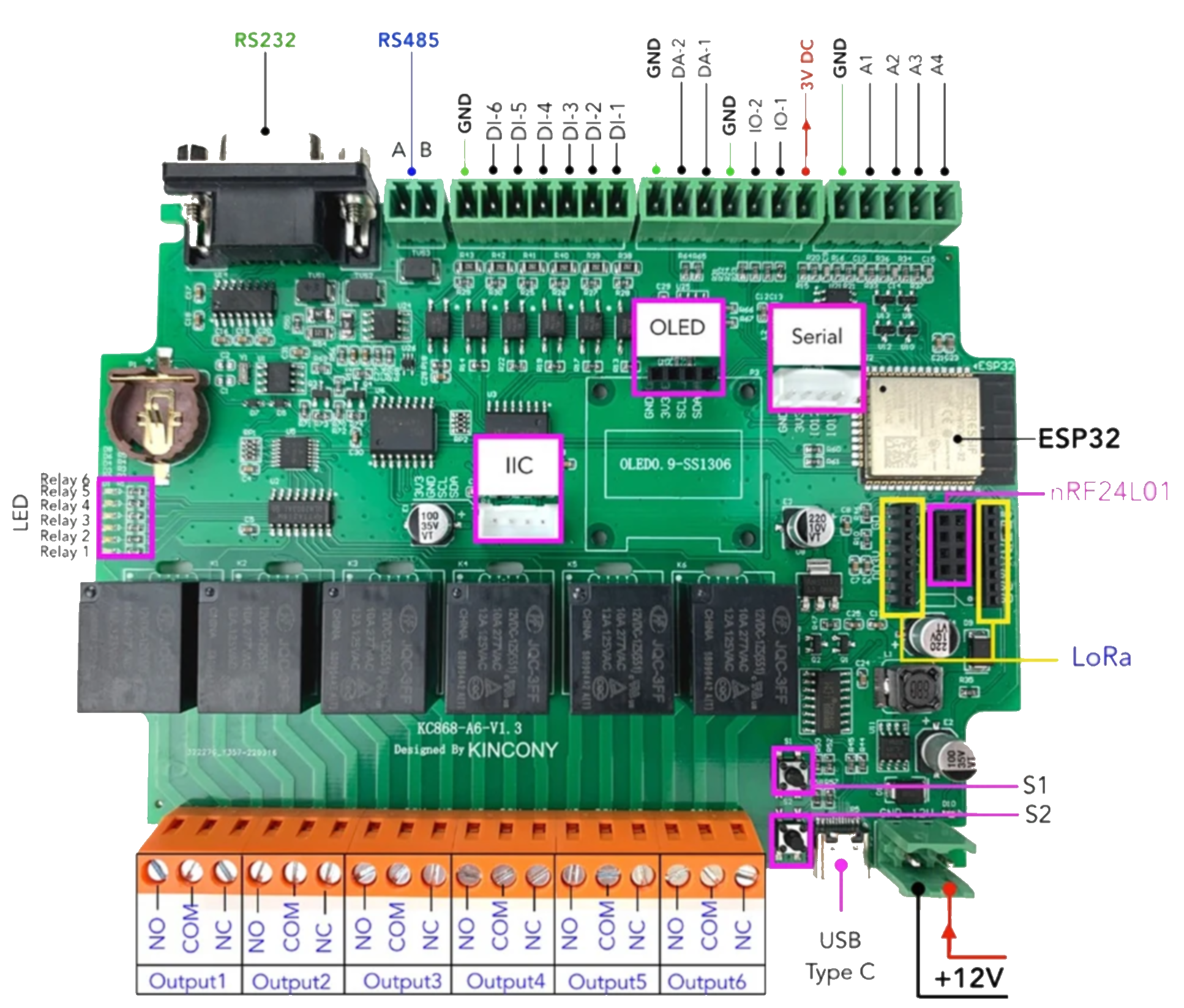 추가된 부분은 ADC 4개 포트와 DAC 2개 포트, 접점 읽기 6포트, 릴레이 6개 포트, RS485통신을 이용한 MODBUS를 추가하였습니다.
