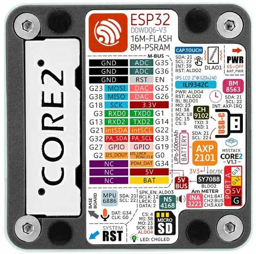 M5Stack인 경우, 뒤면의 센서 덮게(왼쪽 CORE2라고 적힌 부분)를 제거할 경우는 다른 연결방법이 있습니다.